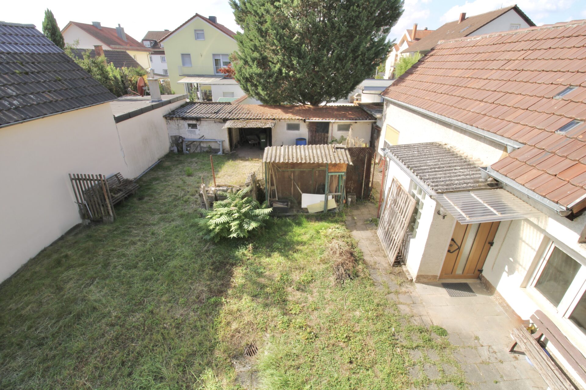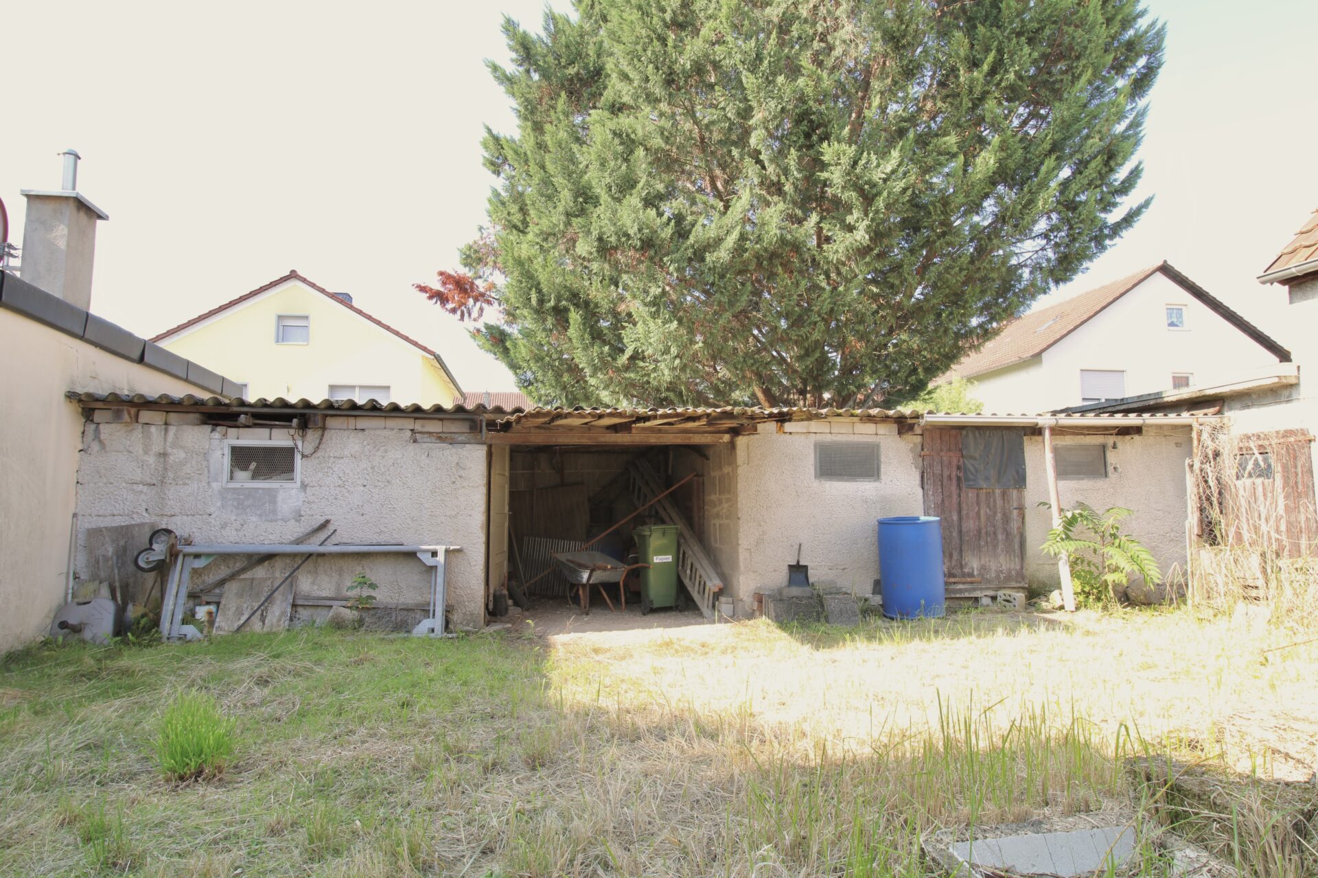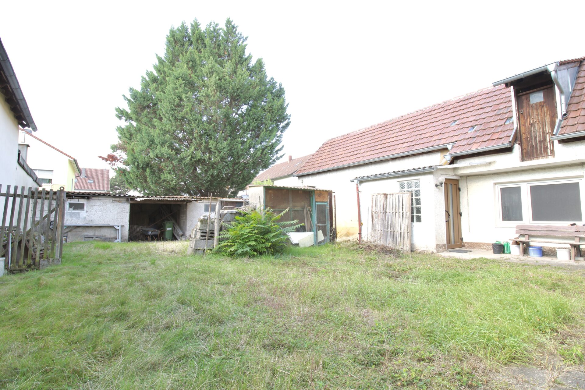 Auf dem Grundstück befinden sich außerdem ein Nebengebäude mit zwei Zimmern, Küche und WC (nicht zu Wohnzwecken geeignet) sowie eine Scheune mit ehemaligen Stallungen. Diese müssen laut Bauamt zurückgebaut werden, wobei die Rückbauverpflichtung auch für den neuen Eigentümer gilt.