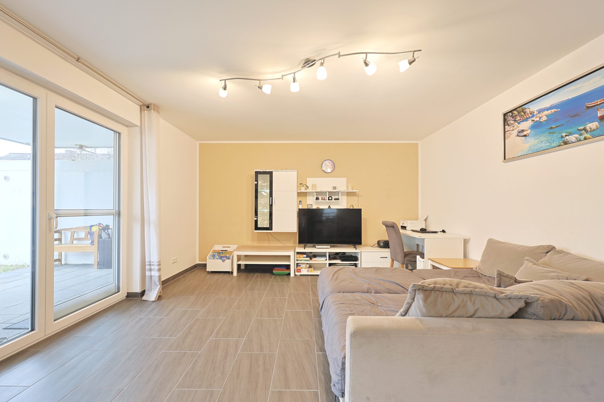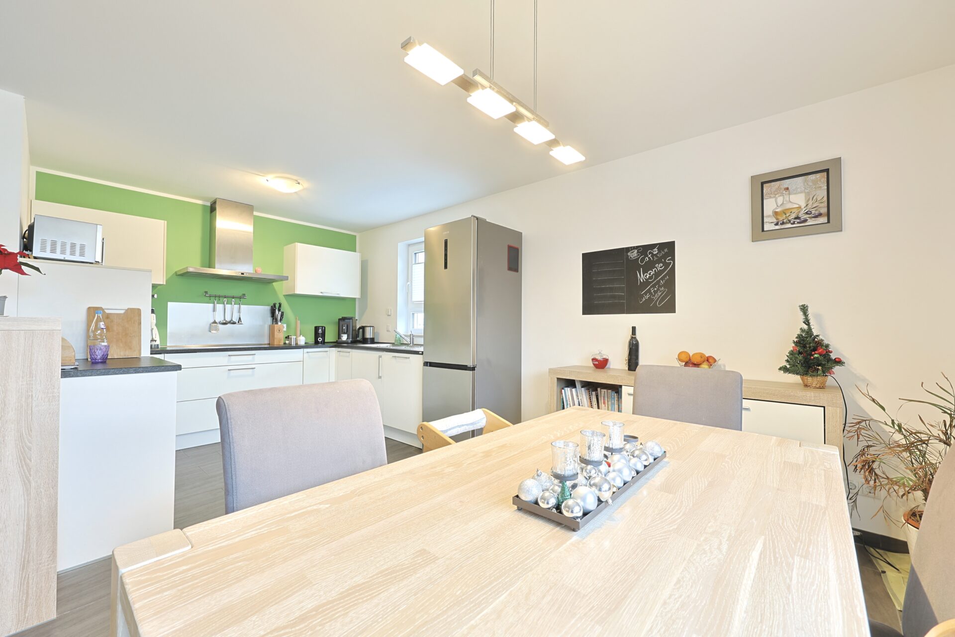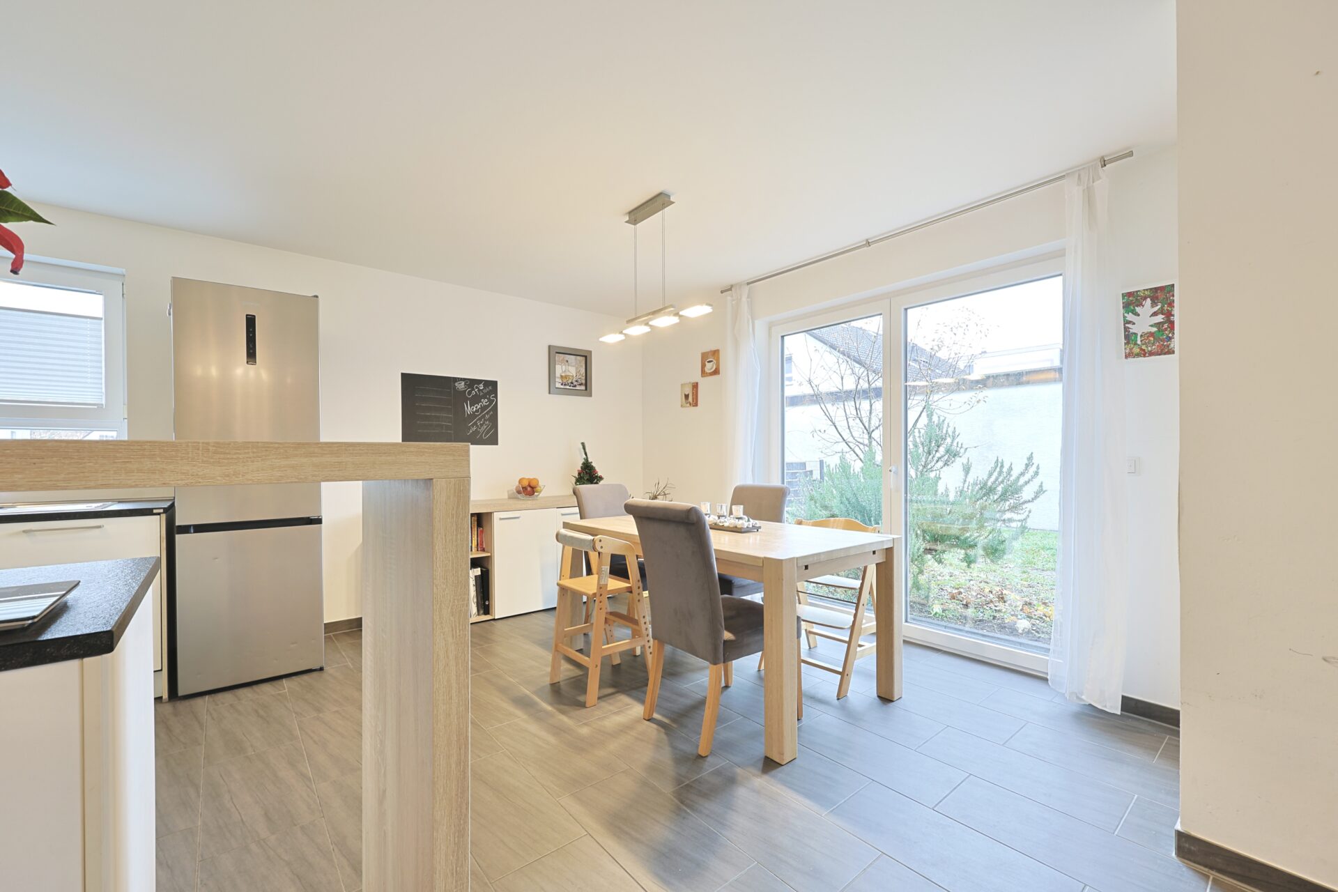 Die Wohnung wurde im Jahr 2015 erstmals bezogen und seitdem ausschließlich von der Eigentümerfamilie genutzt. Breite Fensterflächen, die Terrasse und der Gartenanteil schaffen ein angenehmes Raumgefühl und ermöglichen einen fließenden Übergang zwischen Innen- und Außenbereich. Ein eigener Kellerraum sowie ein großer Gemeinschaftskeller bieten zusätzlichen Stauraum.