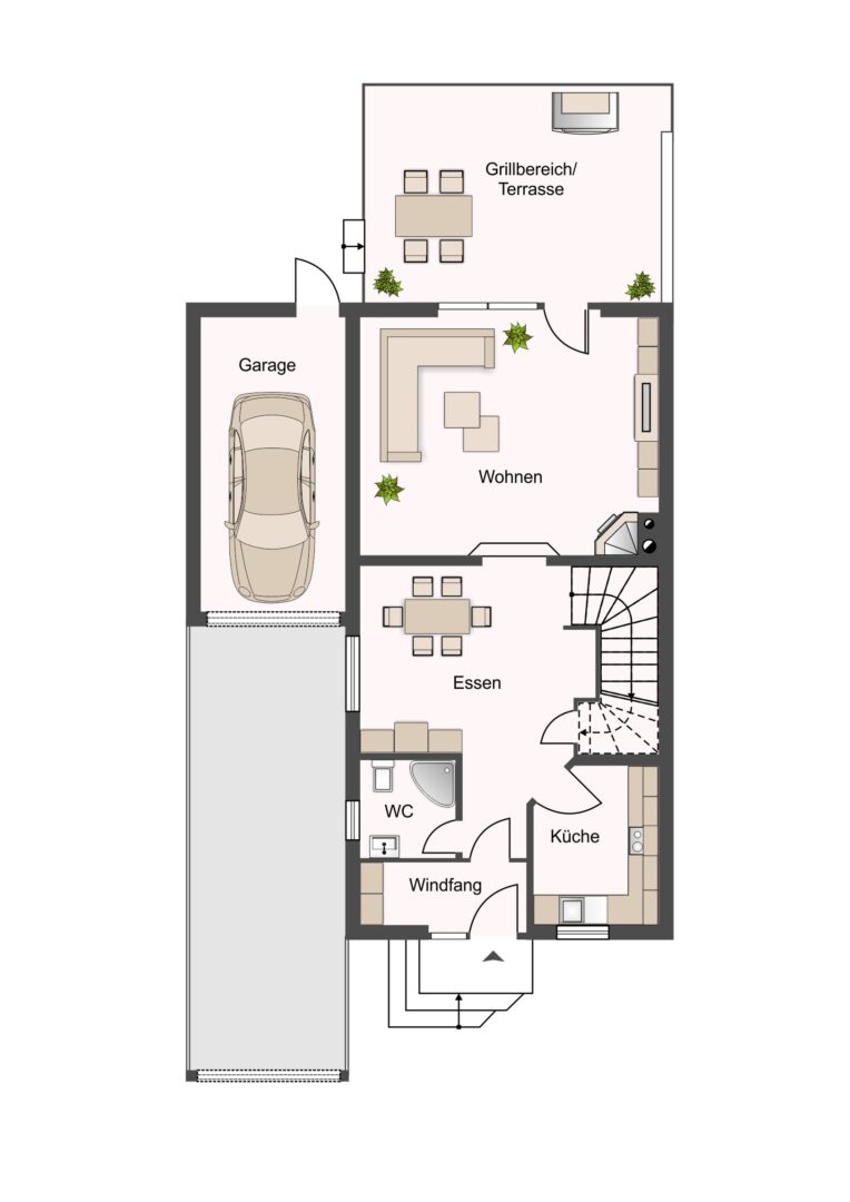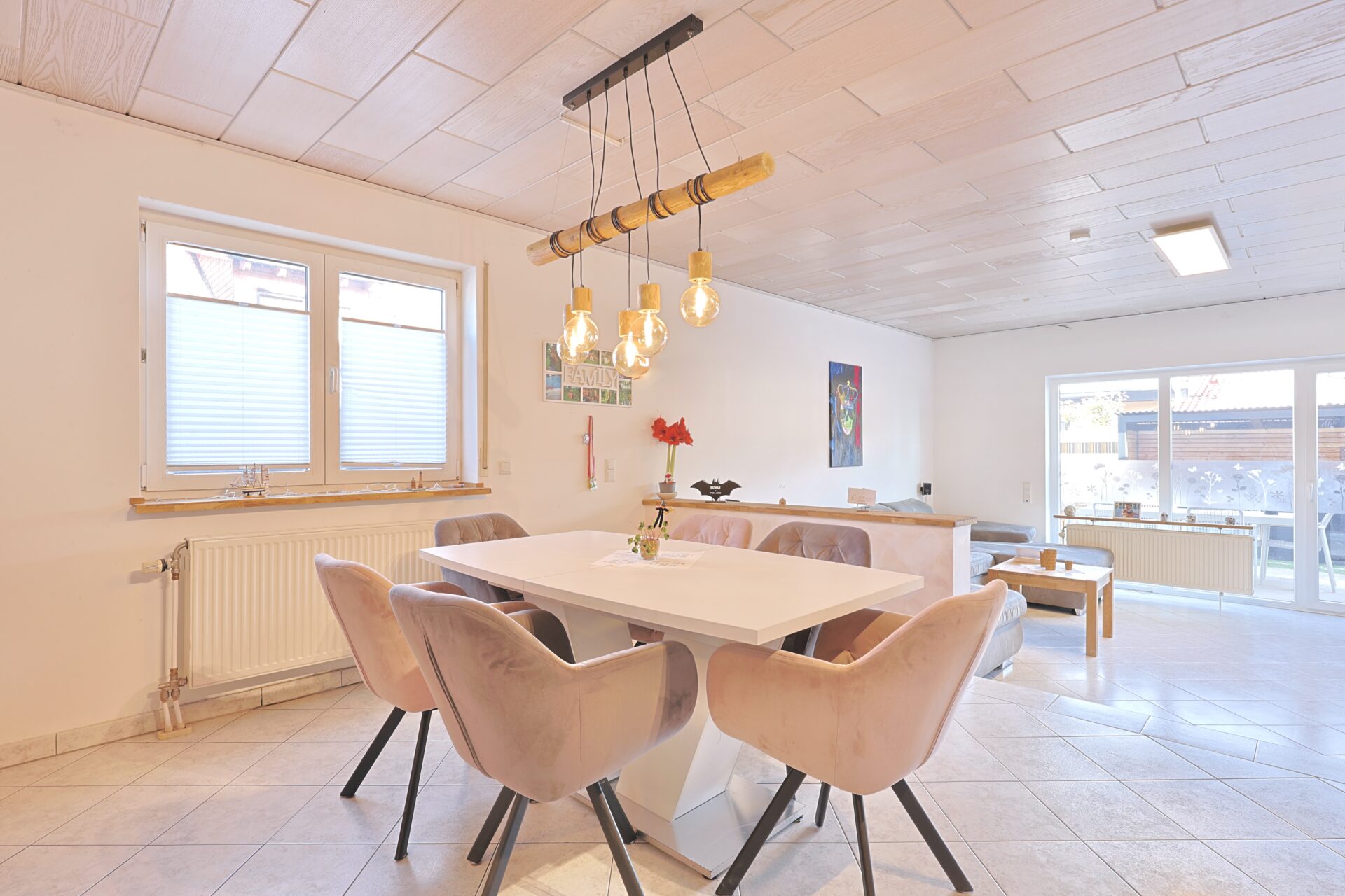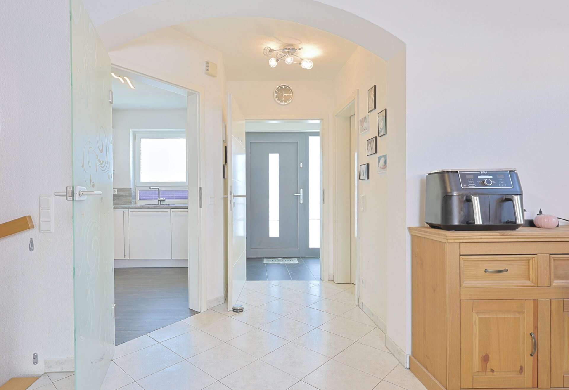 Die Wohnräume verteilen sich auf mehrere Ebenen und werden durch zusätzliche Nutzflächen im Kellergeschoss ergänzt. Vom Wohnzimmer aus ist die Terrasse direkt zugänglich, welche als Außenbereich mit Grillbereich und Whirlpool gestaltet ist. Eine Garage befindet sich neben dem Gebäude und ist dem Objekt zugeordnet. Das Haus wird aktuell eigengenutzt und befindet sich in einer ruhigen Wohnlage von Meckenheim.