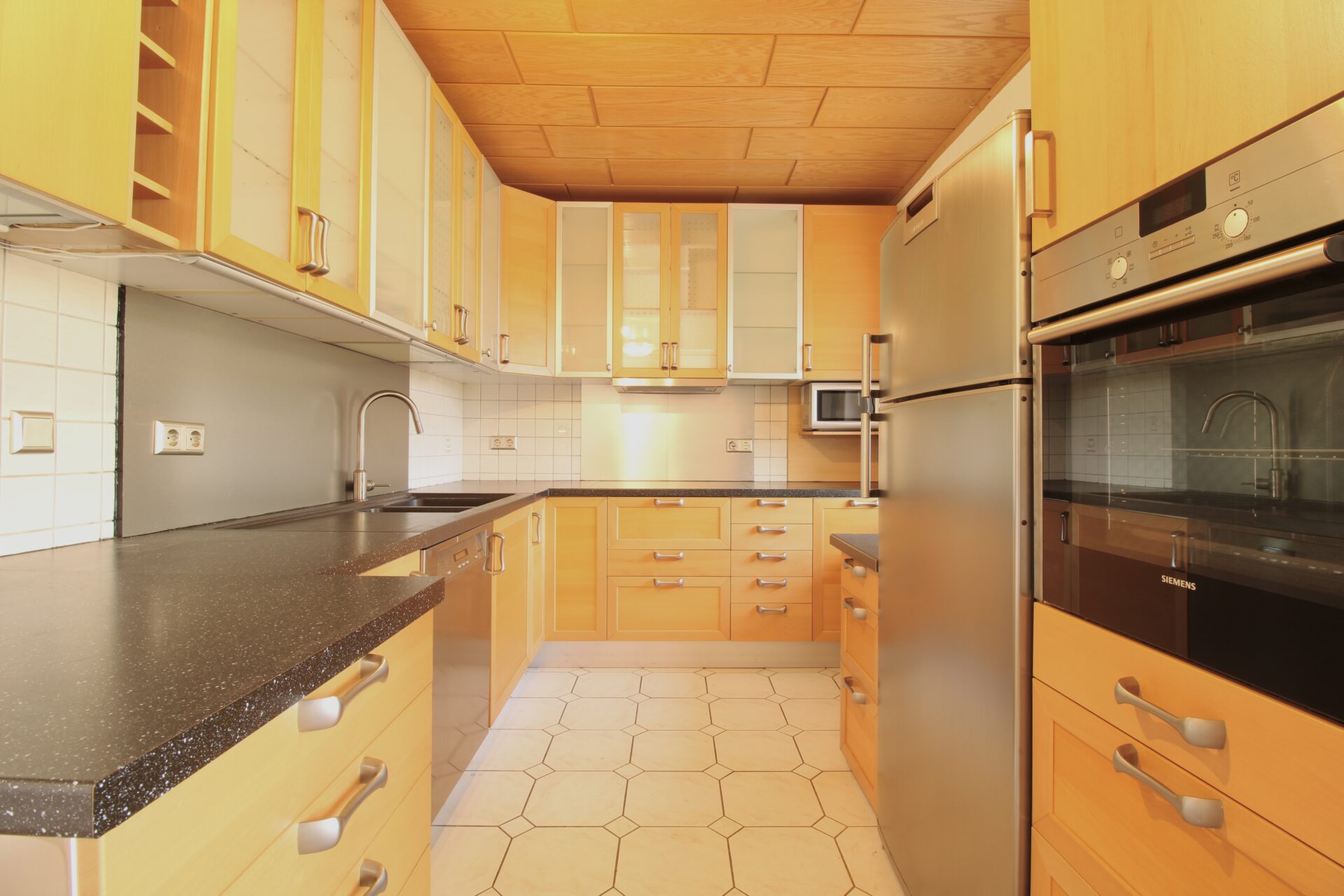 Die offene Küche mit angrenzendem Essbereich bietet ebenfalls Zugang zur Terrasse. Zwei Klimageräte in Wohn- und Schlafzimmer gewährleisten ganzjährig ein angenehmes Raumklima.