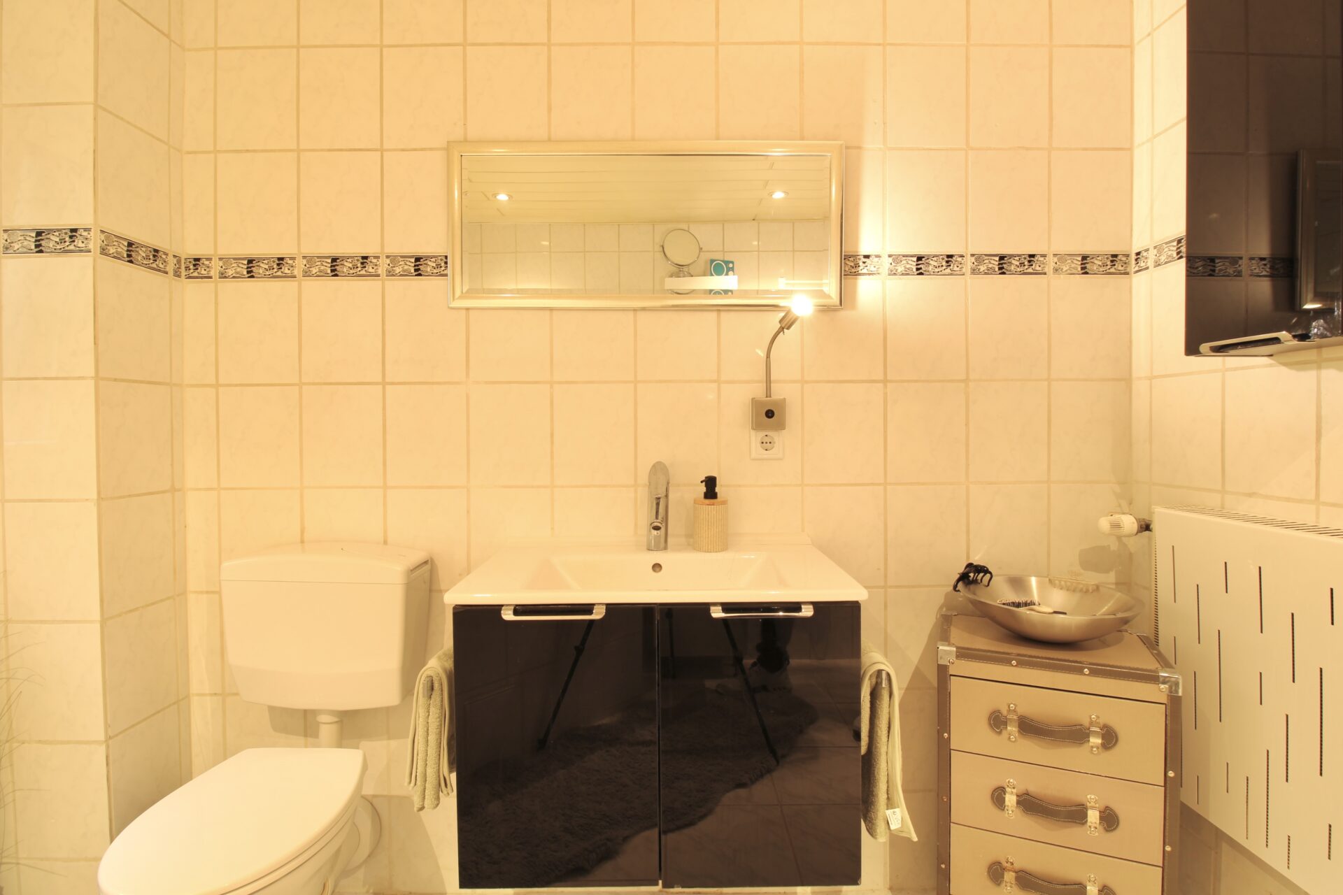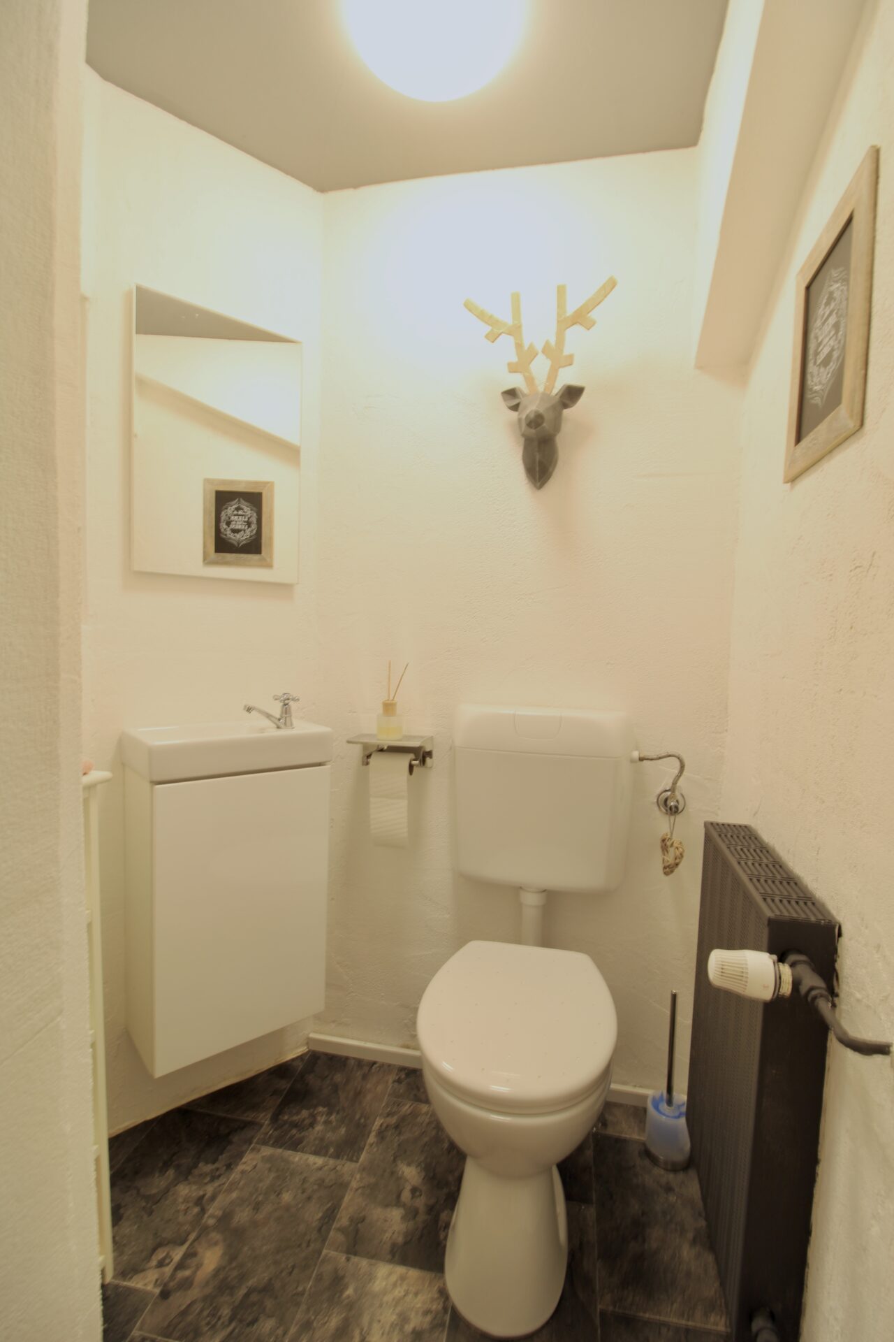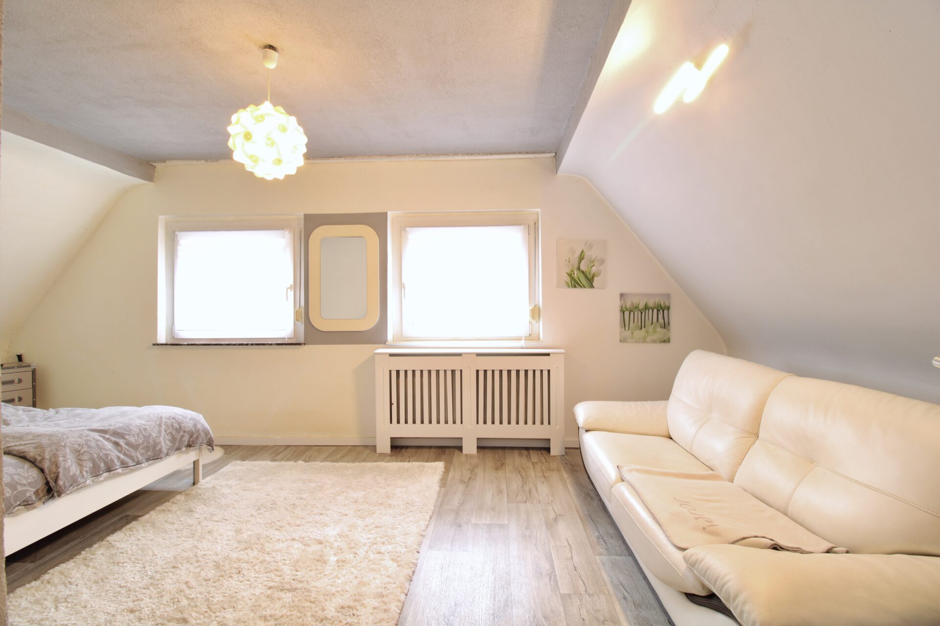 Die Einliegerwohnung im Erdgeschoss (straßenseitige Kelleretage) ist eine ideale Möglichkeit zur zusätzlichen Vermietung, um z. B. einen Kredit zu decken. Zusätzlich stehen Ihnen hier ein großer Wasch- und Heizraum, sowie der Zugang zur Garage zur Verfügung.